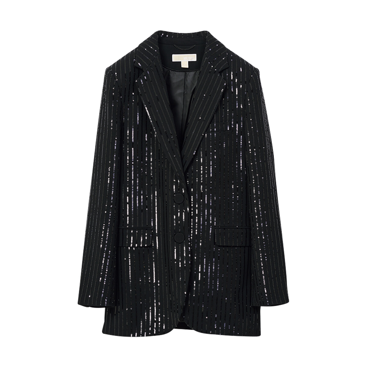 動くたびに煌めくスパンコールのストライプ柄がゴージャス。¥138,600/マイケル マイケル・コース(マイケル・コース カスタマーサービス)