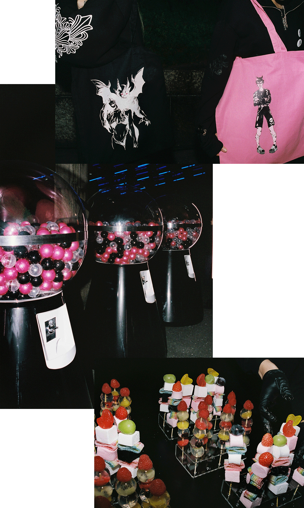 ジェシー・ジョー・スタークとヤング・ブラッドのイラストがあしらわれたトートバッグやキーホルダーなどがゲットできる巨大ガチャガチャが登場。カラフルなスイーツや AFURIのヴィ―ガンラーメンなどケータリングも充実。