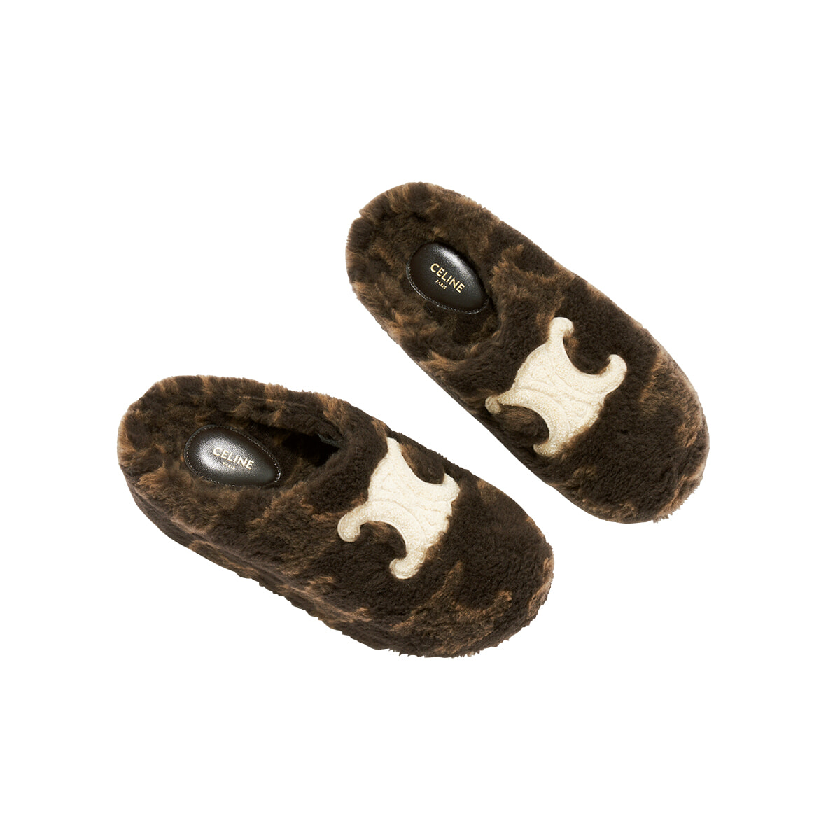 トリオンフモチーフをウールジャカードで表現したクローズドミュール。アッパーの白いパッチがアクセントに。プラットフォームソールだから、スタイルアップも叶えてくれる。(ヒール6.5cm)¥159,500(予定価格)/セリーヌ バイ エディ・スリマン(セリーヌ ジャパン