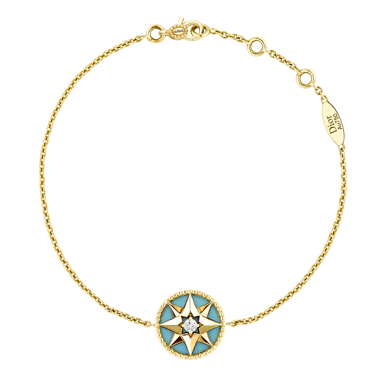 創設者クリスチャン・ディオールのラッキーモチーフを再解釈したコレクションより。ラフな装いに映えるターコイズが魅力のブレスレット「ローズ デヴァン」(YG×ターコイズ×ダイヤモンド)¥330,000/ディオール ファイン ジュエリー(クリスチャン ディオール)