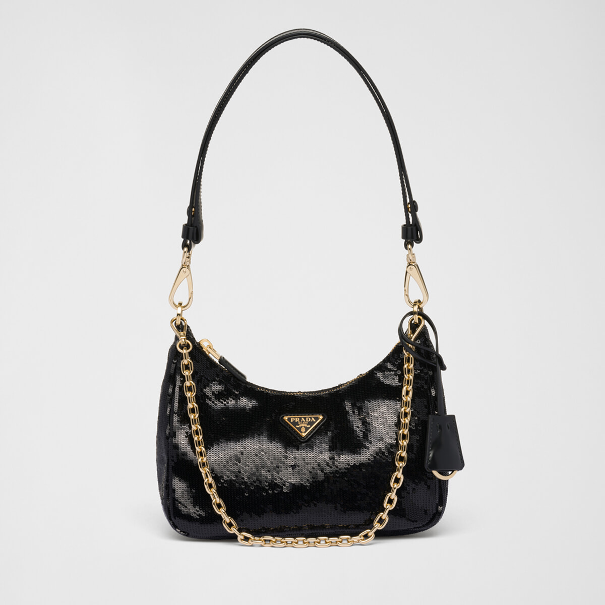 世界中の海から回収したプラスチックなどを再生して作った新しいナイロンを使用する、プラダの「Re-Nylon」コレクション。サステナブルとエレガンスを追求したコレクションに総スパンコールのミニバッグが到着。