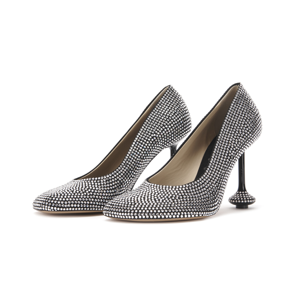 アイコニックなヒールの「トイ パンプス」の全面にラインストーンをあしらった遊び心あふれるデザイン。ブラックの他、ピスタチオカラー、ボンボン(ピンク)もラインアップ。