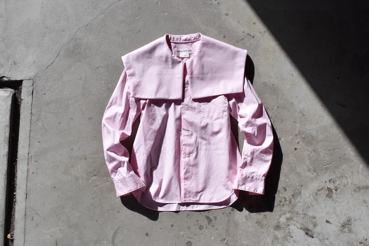 3月のリニューアルで増設された2階のフロアでは、コム デ ギャルソン・ガールのビックカラーのシャツを。ロマンティックなディテールやピンクは、大人になっても好きなもの。私の肌にも馴染むペールトーンのシャツは、ワイドパンツやデニムで合わせたら可愛いだろうと即決。