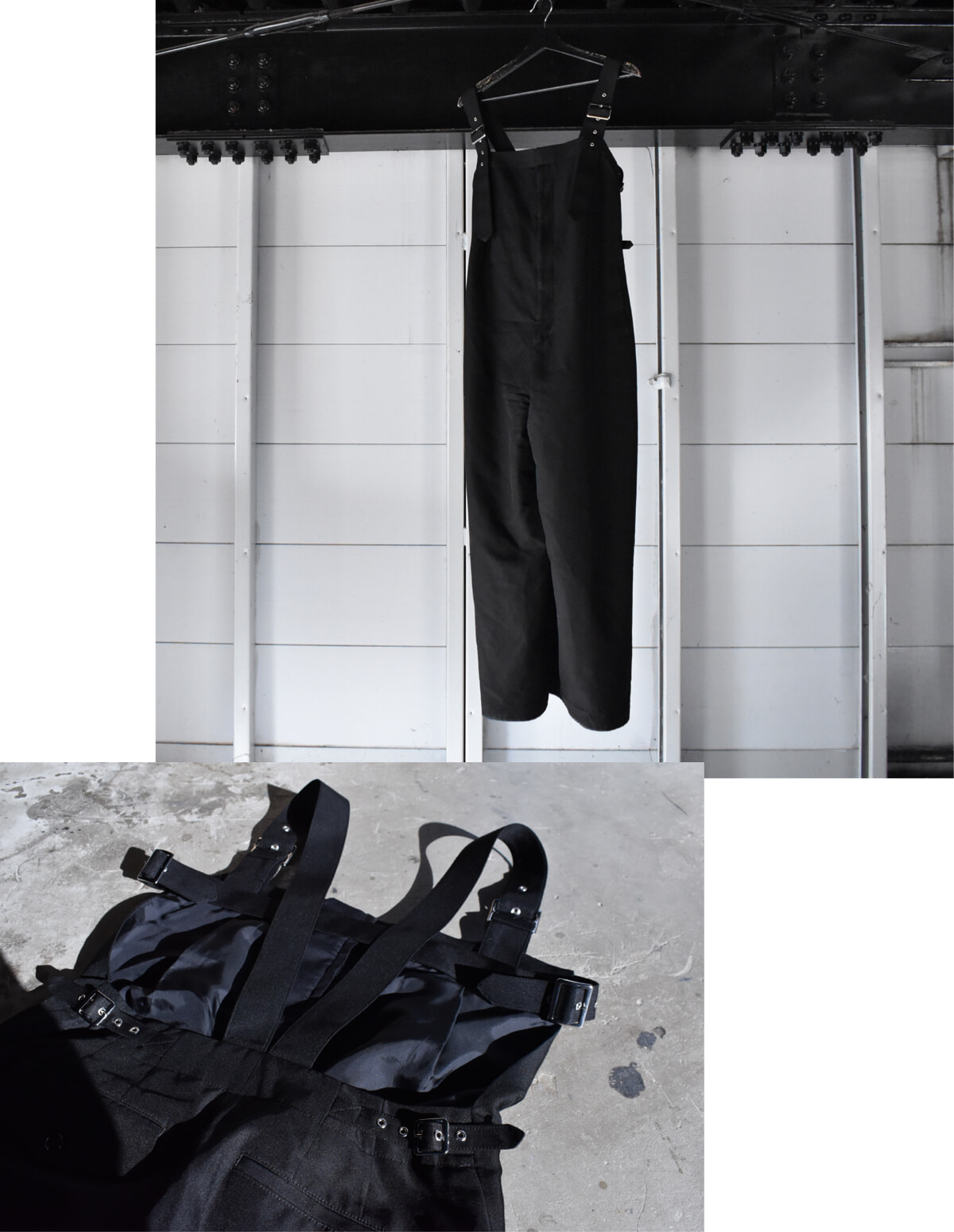 誰しもが馴染みのあるオーバーオールをノワール ケイ ニノミヤらしい強さで味つけ。