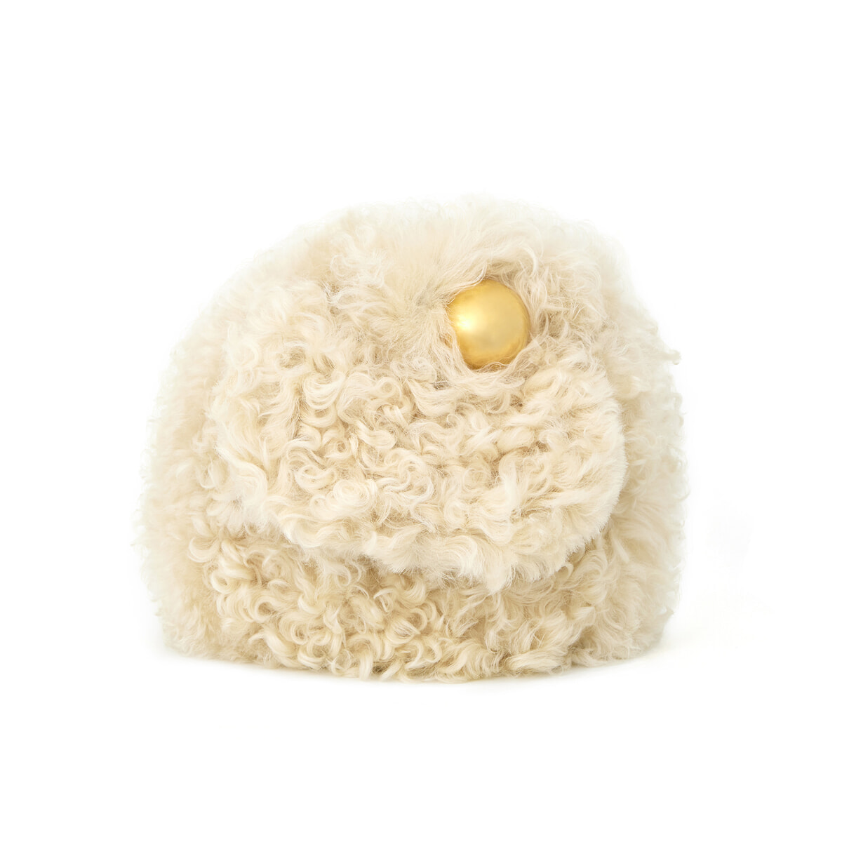 メタリックなゴールドの球体クロージャーがポイント。ジル サンダーの人気ポーチ「Sphere Pouch」にシアリング製が仲間入り。カーリーな毛並みが抱きしめたくなる柔らかさ。