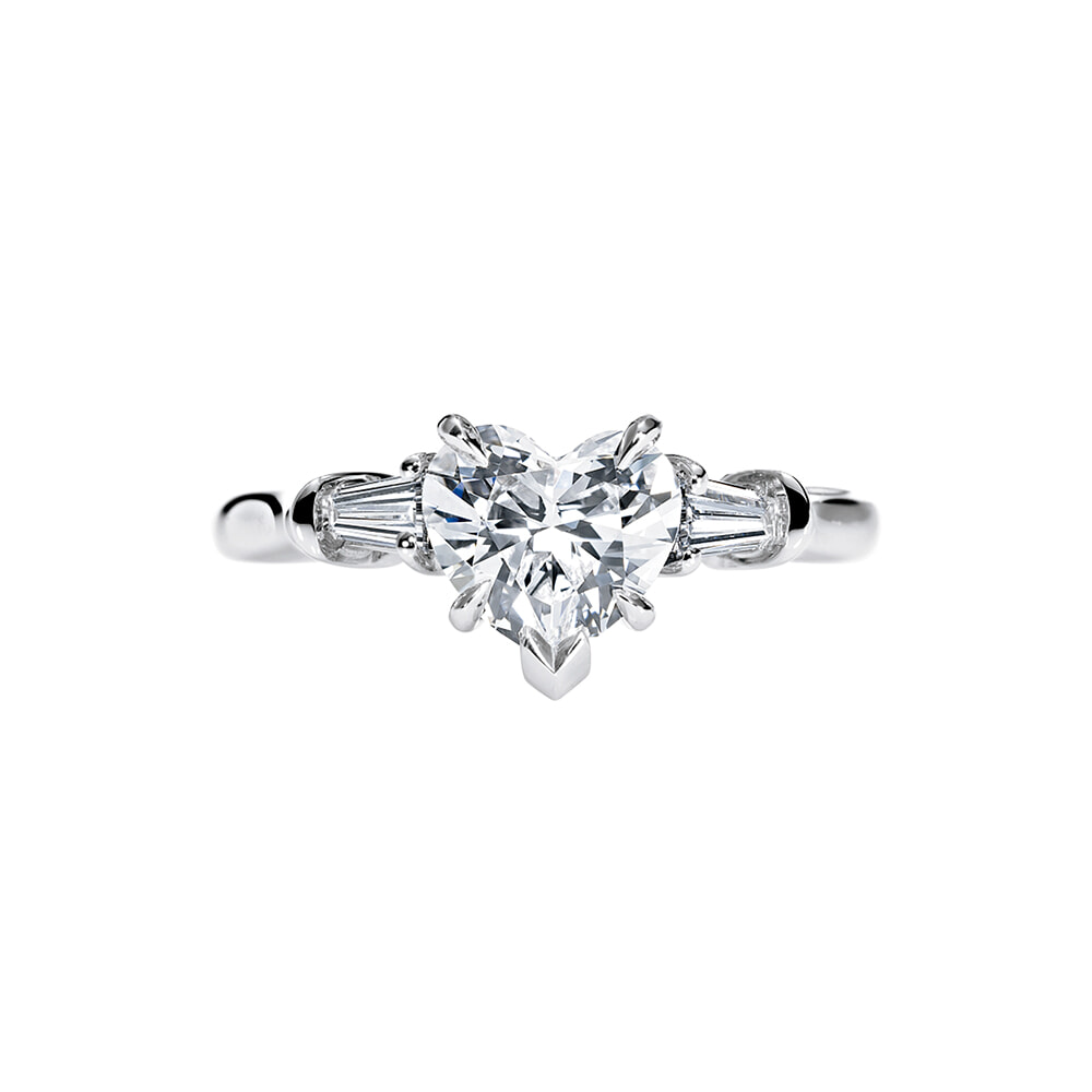 1932年の創業以来、創始者のフィロソフィを受け継ぎ、ダイヤモンドを芸術の域まで高めてきたハリー・ウィンストン。燦然と輝くハートシェイプのダイヤモンドからは、余計な装飾を施さずともダイヤモンドそのものがデザインの主役であることが伝わってくる。センターストーンを際立たせるために両脇にテーパードバケットカットを添えたリングは世界中の女性の永遠の憧れ。シェイプを損なわないために最小限のメタルで石を留める、爪の存在を感じさせないセッティングからも卓越したクラフトマンシップを感じて。
