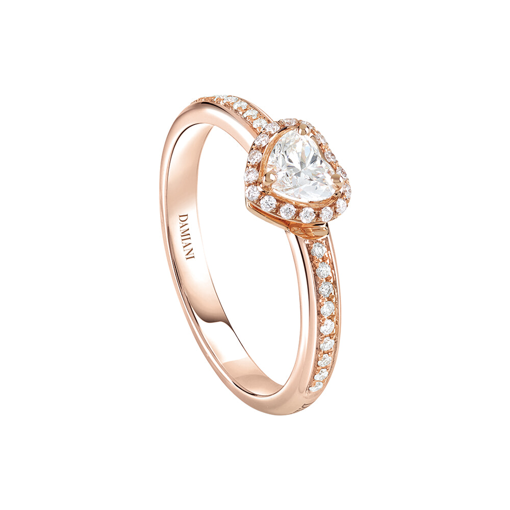 0.3ctのハートシェイプダイヤモンドと、イタリアンジュエラーらしいピンクゴールドの組み合わせで手元をグラマラスに。リング「ミヌー」(PG×ダイヤモンド)¥480,700/ダミアーニ(ダミアーニ 銀座タワー)