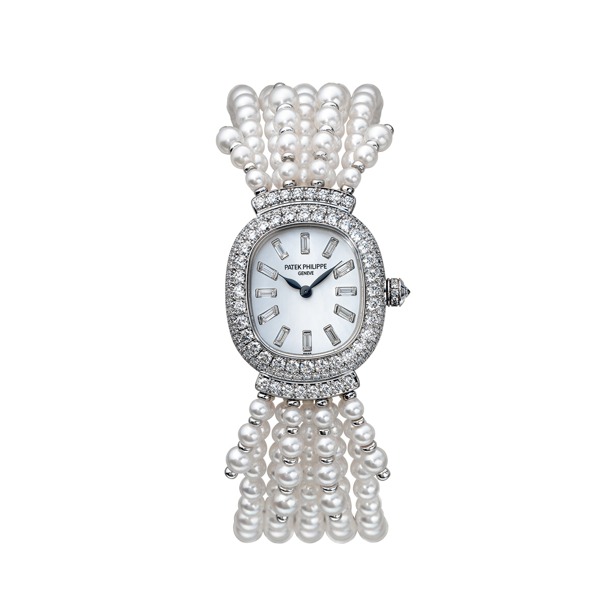 華やかなパールやダイヤモンドの装飾が女王を盛り立てるパテック フィリップの特注時計「Ref.4975/1G」