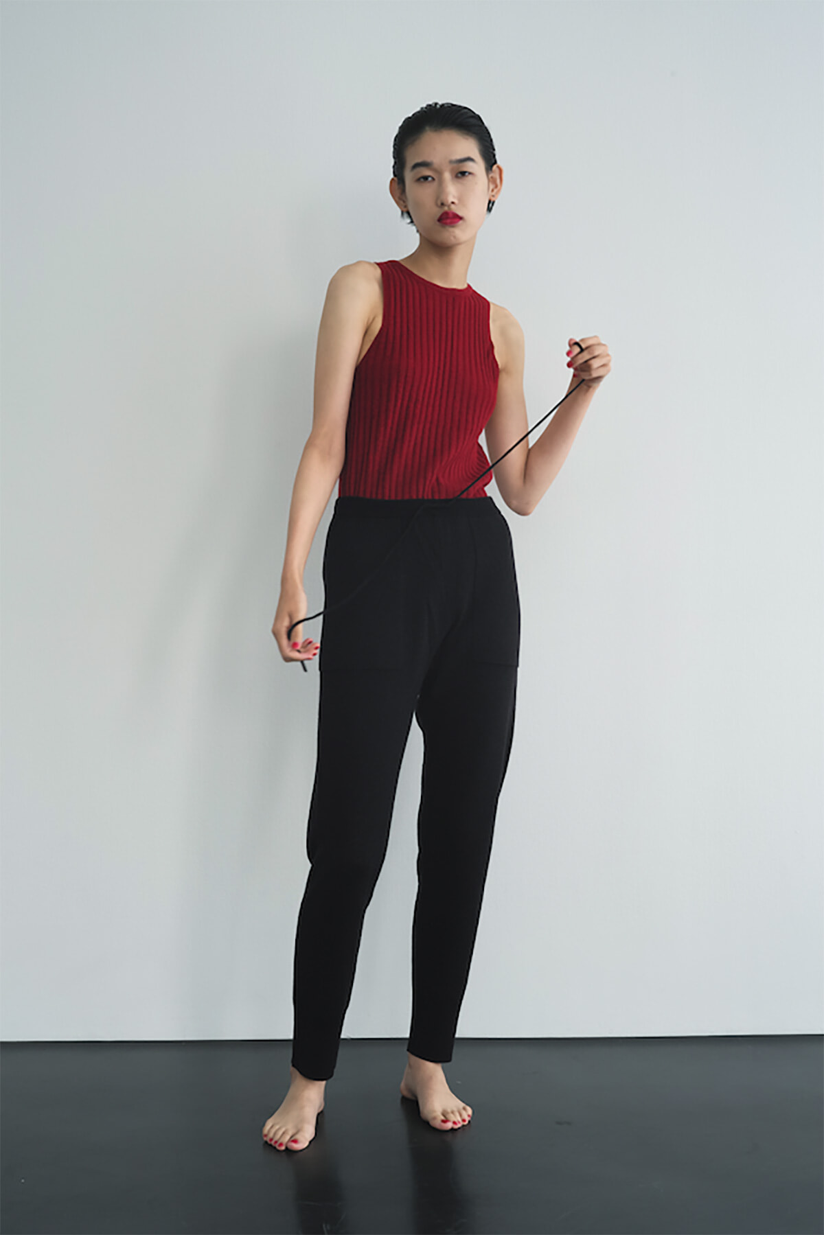 アメリカンスリーブタンク¥31,900、トラウザーパンツ¥70,400/ともにフリーマン Photography : Hiroko Matsubara