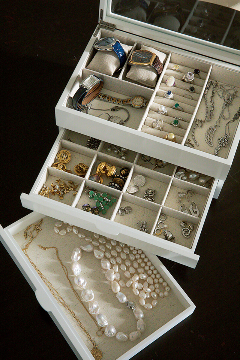 亡き夫をはじめとして、大切な人たちから贈られた数々のジュエリーが入ったボックスは特別なもの。