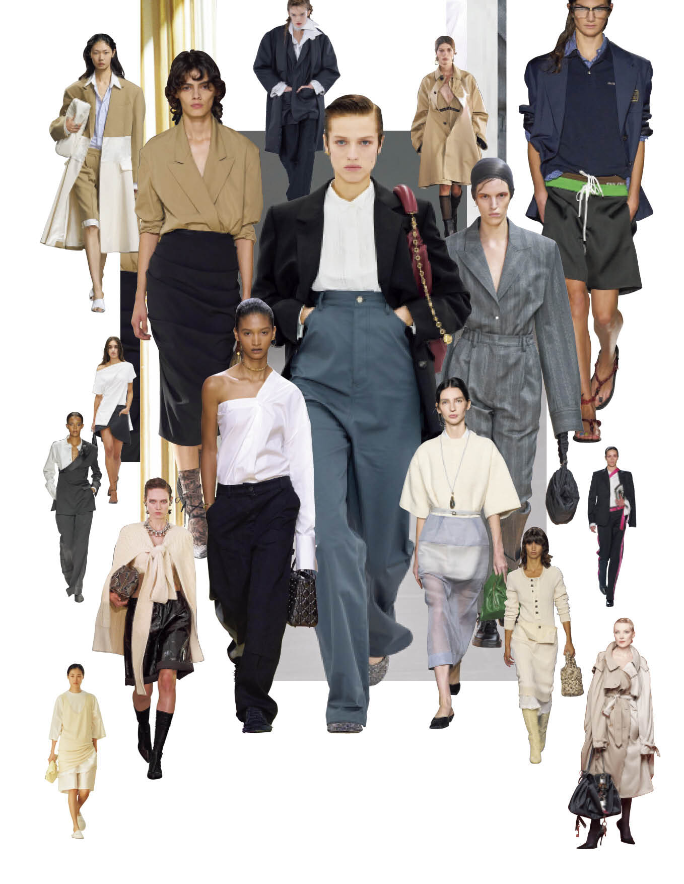 見たことのない、ありふれたもの。2024春夏はこのおしゃれステートメントを掲げて。主役はシャツやブレザー、トレンチコートなど誰もが知っている日常ワードローブ。でも、これまでにない斬新なプロポーションや意外な素材への変換、思いもよらないスタイリングの妙で、既存のベーシックとは違う新しいアイデンティティを主張している。ここ数シーズン続いている定番の再解釈のさらなる進化形はリアルで自由。着る人の毎日をそれぞれに美しくする服なのだ。