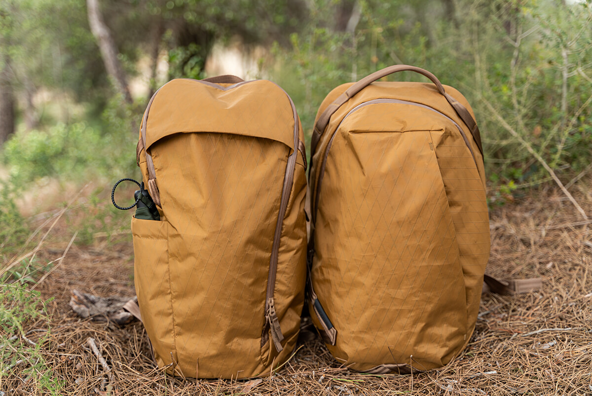 シックな新色「コヨーテ・ブラウン」は、季節やシーンを問わずに活躍。左:バックパック「デイリープラス」(約 H49×W29×D19cm、容量:約21L、重さ:約1210g)¥35,200 右:バックパック「デイブレーカー 2」(H50×W26×D19cm、容量:25L、重さ : 660g *X-Pac 718g)¥29,700/ともにエイブルキャリー