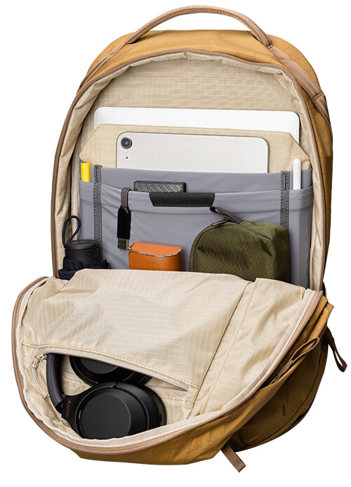 定番モデル「デイリーバックパック」を改良し、昨年春に登場した「デイリープラス」は、発売と同時に完売となり、世界的ベストセラーに。日本での再販時には、1週間で400点も売れたほどの人気モデル。旧モデルと比べて、縦横1cmずつサイズアップし、バックパック上部の幅を広げることで1リットル分の容量を増やし、21リットルに。また、PCホルダーにはふたつのポケットが追加され、タブレット端末や書類などの収納にもぴったり。サイドには大きめのボトルも収納できるボトルホルダーも追加したので、出張時や外出先での仕事にはもちろん、オフのお出かけにも重宝間違いなし。