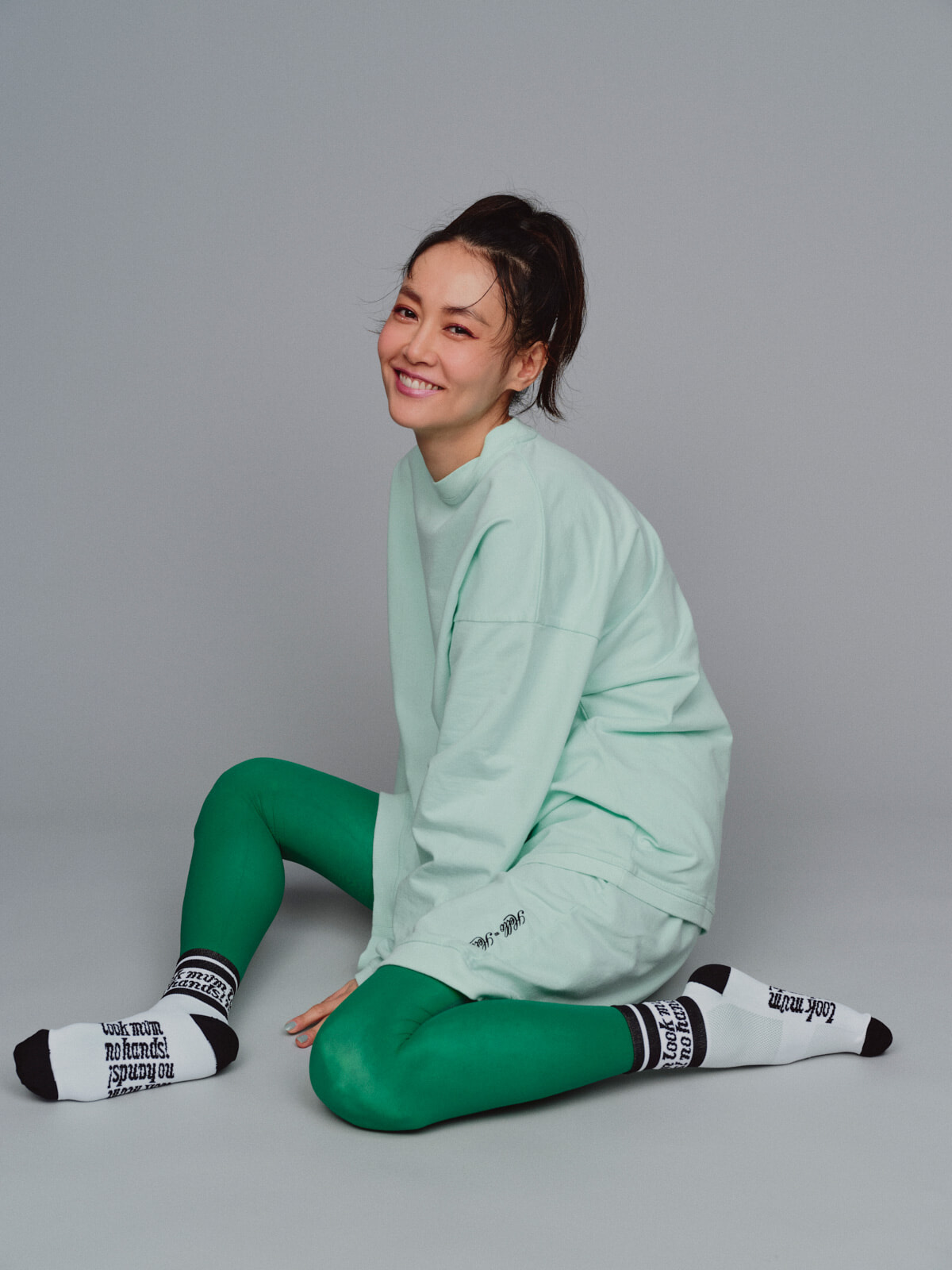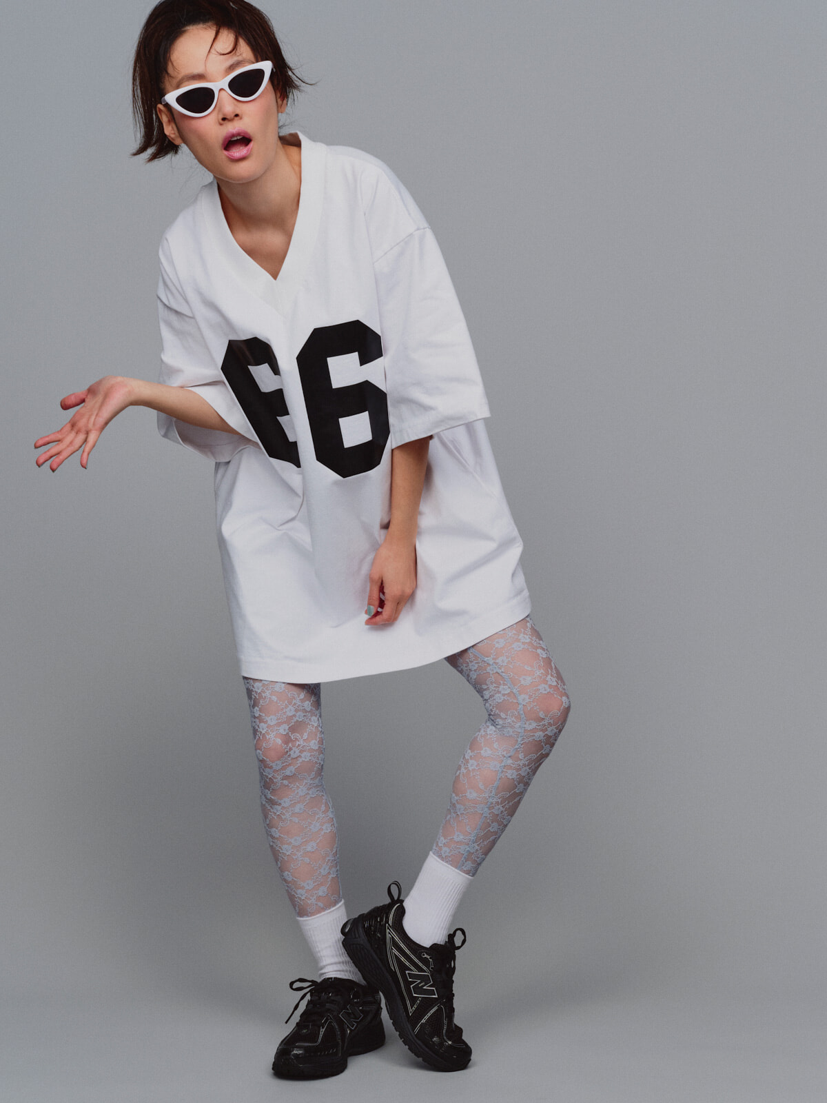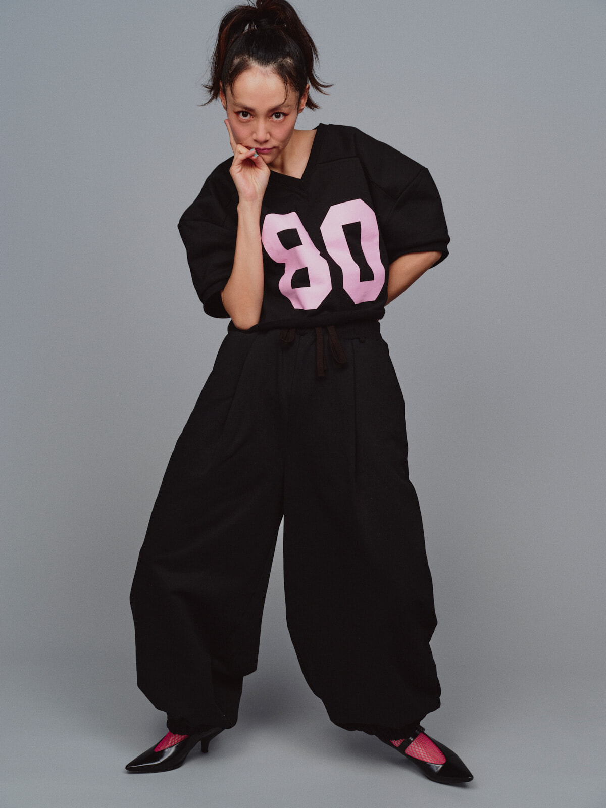 本コラボレーションでは、山本マナがワードローブに欠かせない、かつ好きなアイテムだと語るスウェットアイテム4型を制作。「自分が着たい・着られる」という目線で、ユニフォームの要素を取り入れたシンプルなデザインに仕上げている。着心地のよさはもちろんのこと、シルエットや丈の長さ、生地やディテールにもこだわり抜いて、カジュアルの枠に収まらない、よそいきとしてのスウェットにもなるようにという想いも込められている。展開するのは「ナンバリング ラグビースウェット」「バルーン スウェットパンツ」「ナンバリング ビッグ VネックTEE」「HELLO ミニ裏毛セットアップ」の4型。