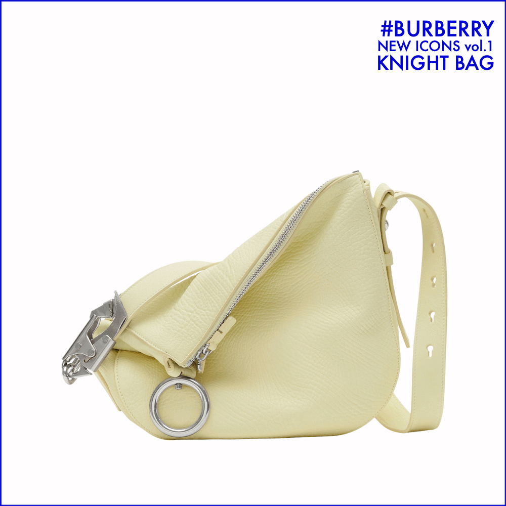 ダニエル・リー初のコレクションとなった2023年秋冬で登場した「ナイトバッグ」が、素材とカラーをアップデートしてお目見え。バーバリーのアイコニックなロゴ「馬上の騎士」デザインを連想させるフォルムに、ハウスコードを引き立てるホースドッグクリップを備えた逸品は、まさに新時代のバーバリーを体現する新アイコン。