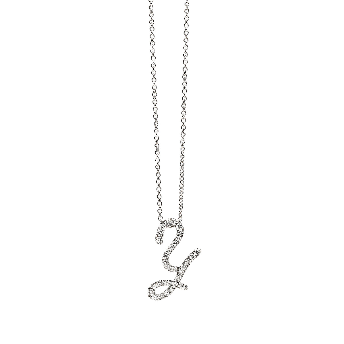 ダイヤモンドで流れるようにデザインした英字のペンダント。約50cmのチェーンの先に優雅に舞うようなセッティングも魅力。「ミキモト イニシャル コレクション」(WG×ダイヤモンド)¥253,000〜/ミキモト(ミキモト カスタマーズ・サービスセンター)