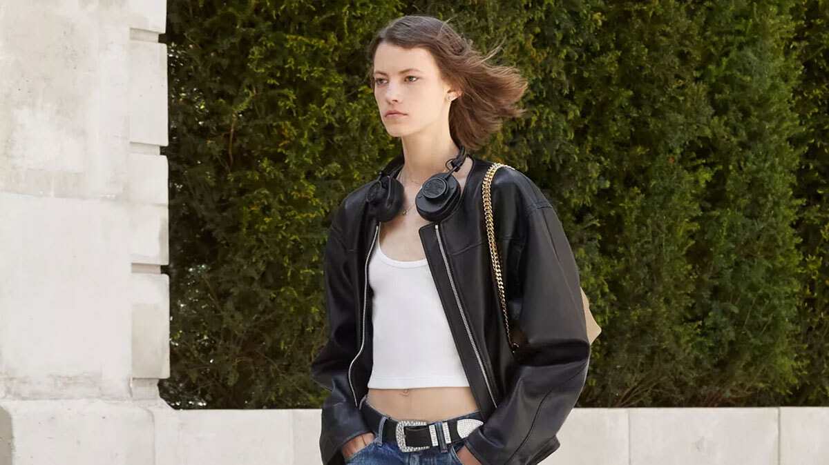 バイカージャケットはカジュアルにもシックにも。セリーヌ2024年春夏コレクションにて。(パリ、2023年10月20日)photography : Imaxtree