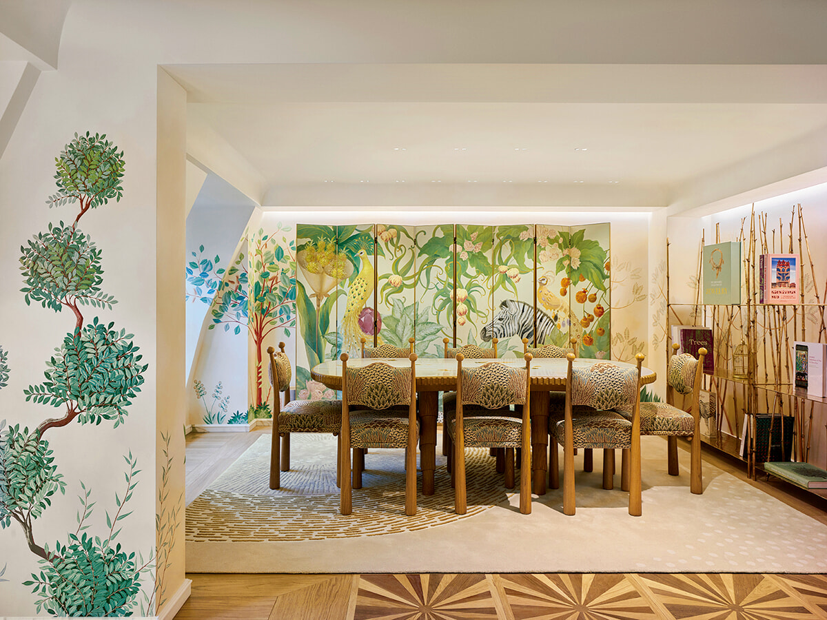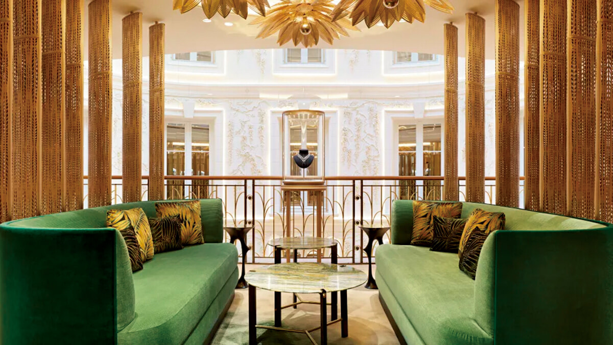 高度な職人技とカルティエ スタイルにインスピレーションを与え続ける動植物が凝縮されているのは、ローラ・ゴンザレスに内装が任された最上階の「レジデンス」だろう。手作業が生きた動物が遊ぶ、ジャングルの屏風や緑鮮やかに植物が描かれた壁……カルティエの世界がポエティックに表現されたフロアで過ごすことが許された特別なゲストたちの記憶に、メゾンが大切にするホスピタリティとヘリテージが刻まれる。
