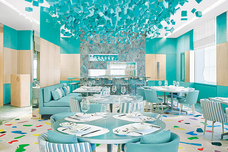 さらにぜひ訪れてみたいのが、あのブルーボックスカフェ・バイ・ダニエル・ブリュー。ミシュランの星付きレストランのシェフが、季節に合わせたデイタイムのメニュー(もちろん朝食も!)をプロデュース。手の込んだスイーツが並ぶアフタヌーンティーは、幸福感いっぱいになれること間違いなしだ。また『ティファニーで朝食を』にオマージュを捧げた没入型インスタレーションも人気の高いスポットで、オードリーが着用したアイコニックなリトルブラックドレスのレプリカや、彼女自身の書き込みがある映画の台本が飾られており、ファンにとってはこたえられない。