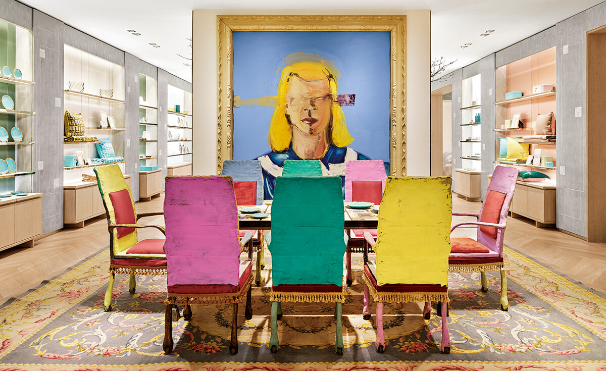 映画『ティファニーで朝食を』冒頭、オードリー・ヘップバーンがクロワッサンをかじるシーンであまりにも有名なティファニーのニューヨーク五番街本店。今年、4年がかりの全面改装工事を終えて、新たな「ランドマーク」として遂にリニューアルオープンした。外観は映画が撮影された1960年代の面影を残しつつ、回転ドアを通って中に足を踏み入れると雰囲気は一変。窓の形のビデオスクリーンにニューヨークの景観が映し出され、天井から明るい光が降り注ぐ。そして正面の奥には、ジャン=ミシェル・バスキアの絵画『Equals Pi,』が。そう、ジュエリーはもちろん魅力的だけれど、この店はそれだけに終わらない。最先端の現代アートが店内のいたるところに飾られて、訪れる人々を迎えてくれるのだ。