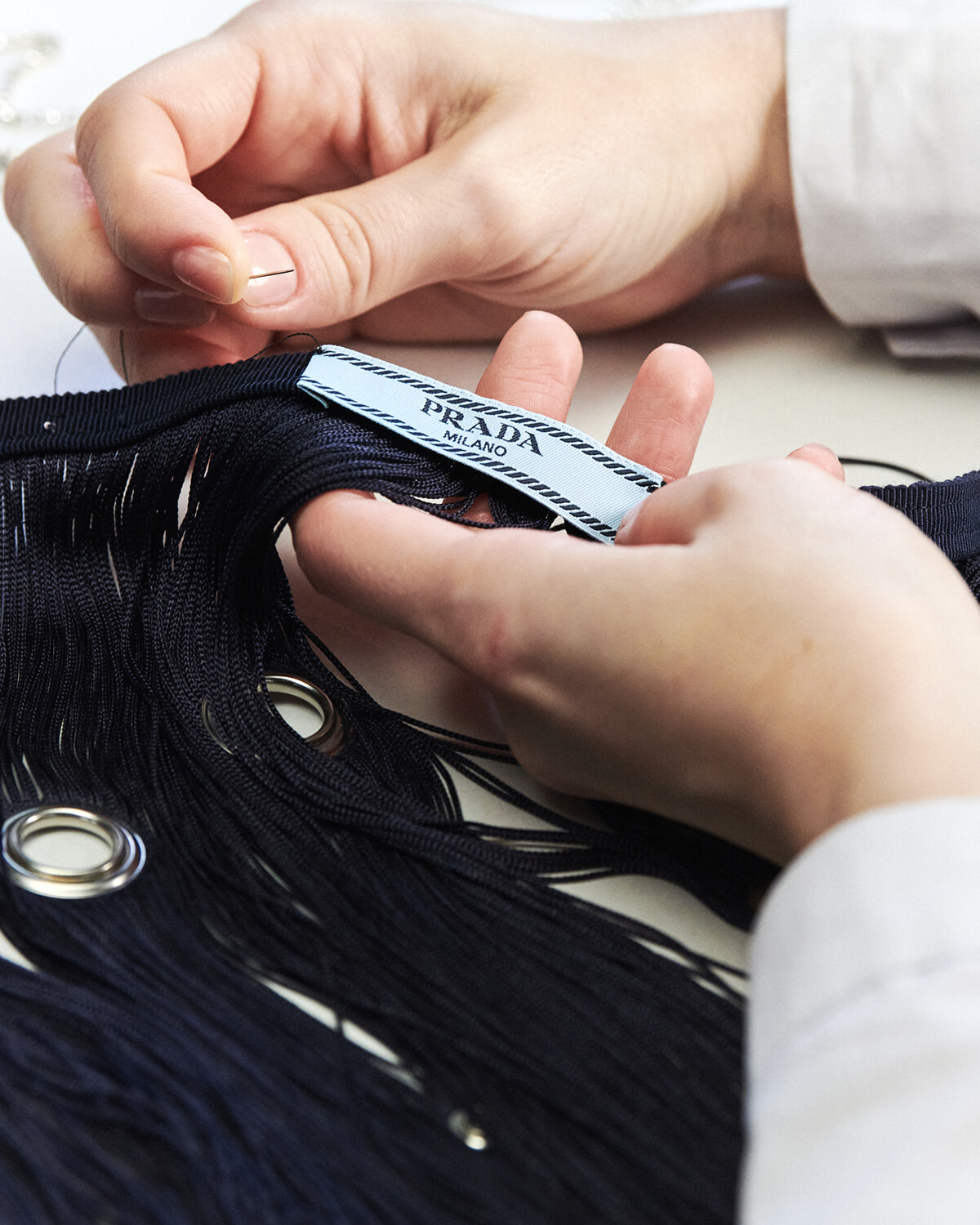 プラダ 2024年春夏コレクションでは、フリンジと刺繍だけで作られたアイテムが大きな話題となった。高度なテクニックが駆使された手仕事の裏側を、madameFIGARO.jpがエクスクルーシブで紹介する。