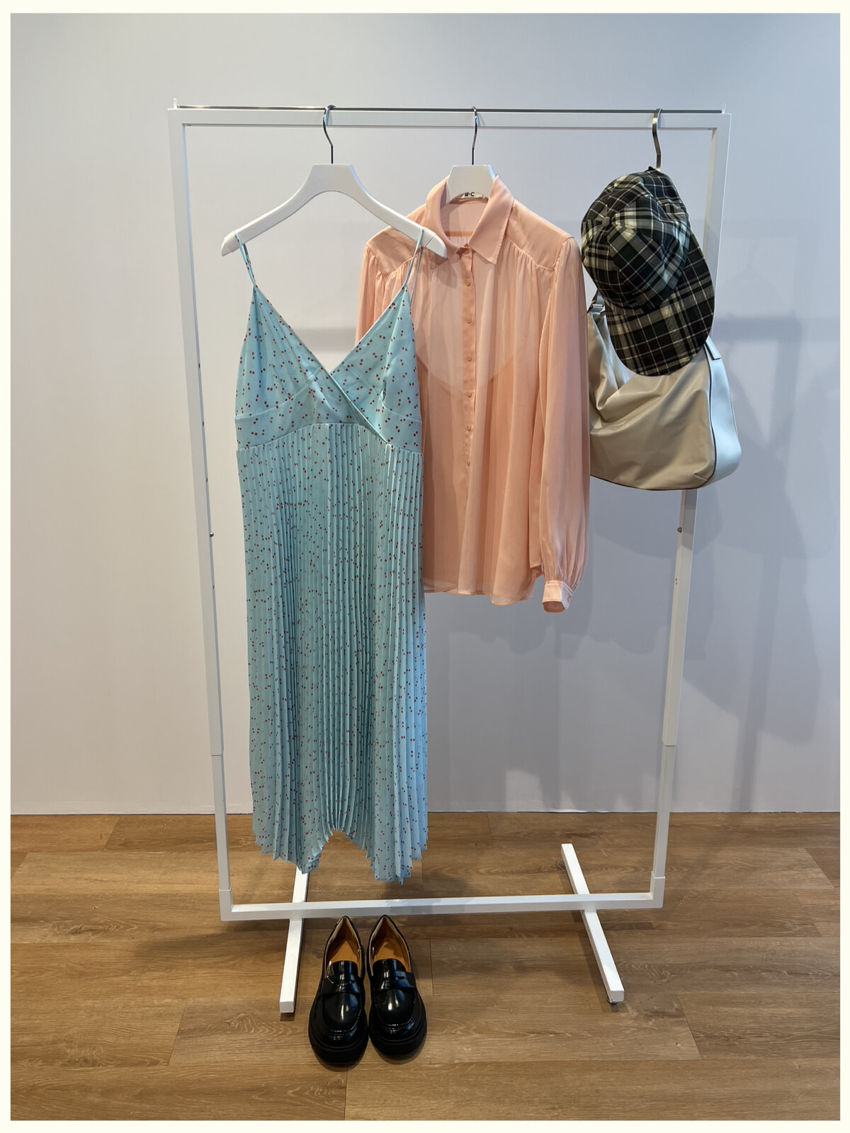 ドレス¥5,990、シャツ¥3,990、キャップ¥2,990、バッグ¥2,990、シューズ¥4,990