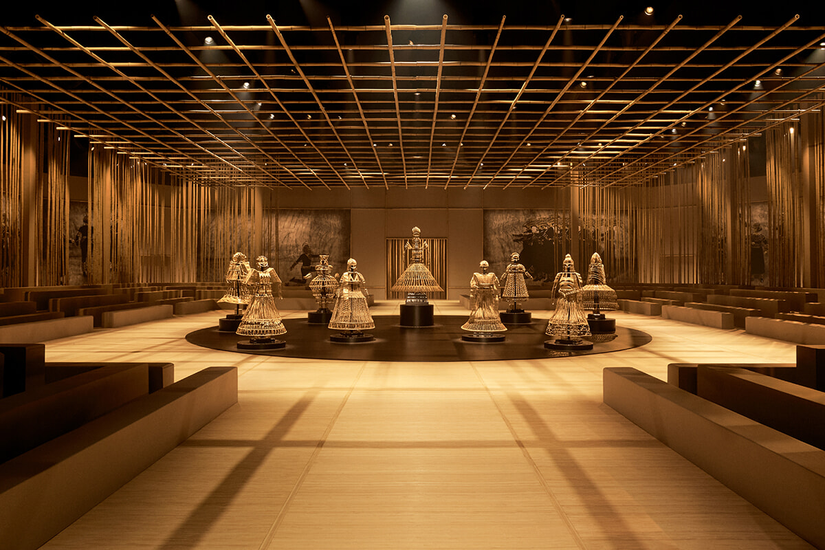 毎シーズン、女性アーティストとのコラボレーションによる舞台装飾も注目を集めるディオール。今回マリア・グラツィア・キウリが招いたのは、女性の体と空間の関係を探求するインド人アーティスト、シャクンタラ・クルカーニだ。