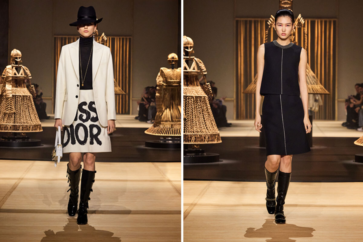 LOOK 15 MISS DIORの文字が描かれたスーツ。