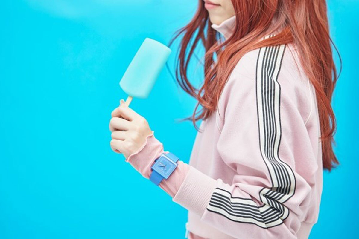 フェイスは33mm×33mmとやや大きめサイズだからパートナーとの兼用も可能。カラーはミント、レモン、スカイブルー、ローズの4色で、それぞれの文字盤のデザインが微妙に異なっている。色違いで揃えればコーディネートの幅も広がるはず。世界各地のスウォッチストアとオンラインストアで展開。