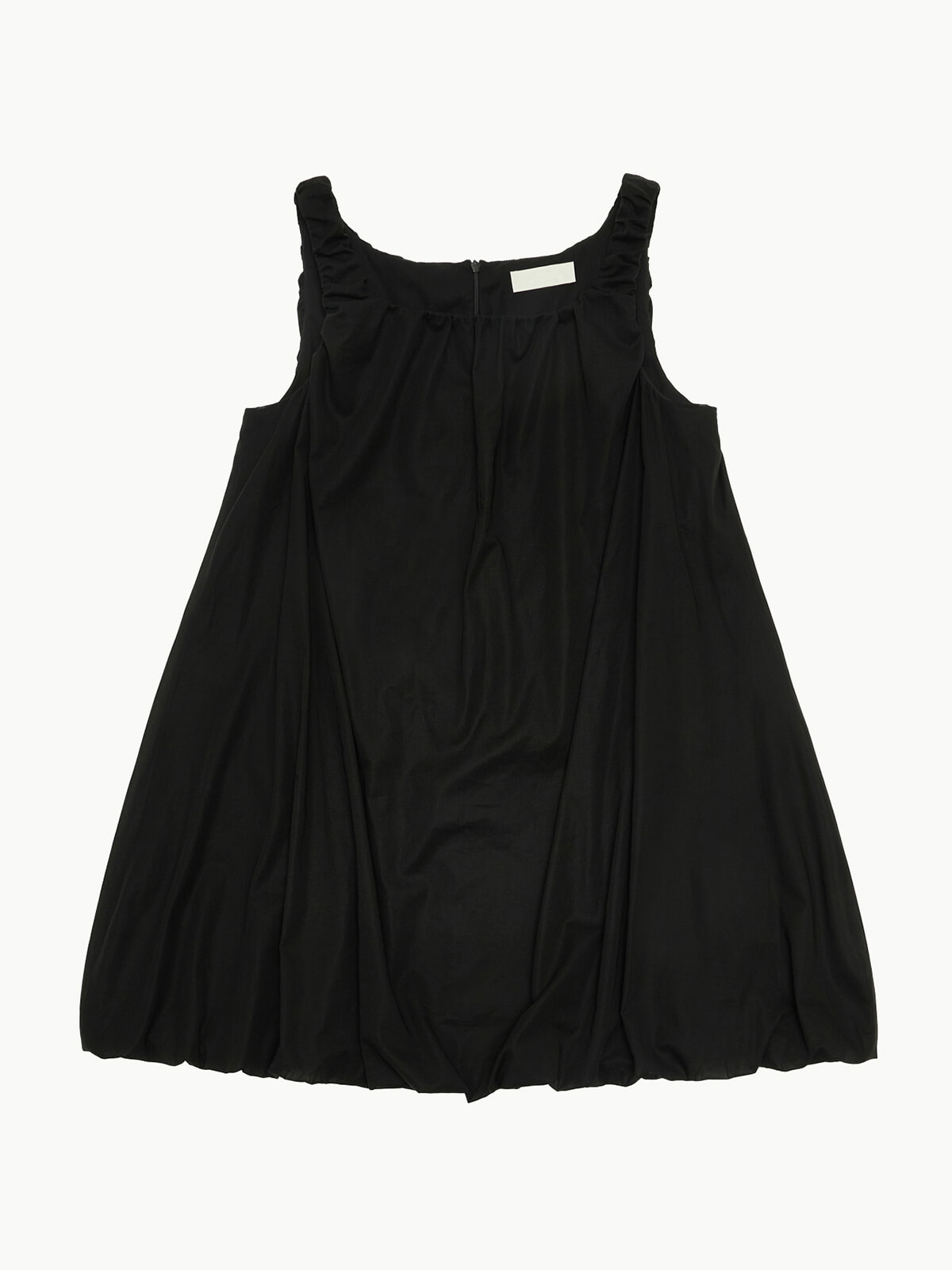 ネックラインやアームホール、裾にシャーリングを施し、ボリューミーなシルエットを実現。ブラックのワントーンながらも印象的な着こなしが叶う一着。