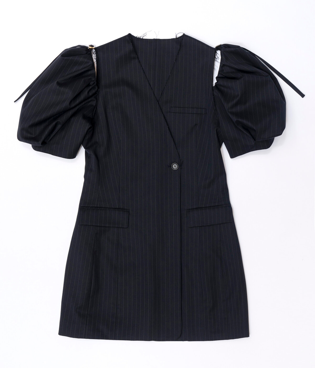 テーラリングした、ジャケット風のデザインがクールなミニ丈ワンピース。ショルダーのカッティングで抜け感が演出でき、取り外しも可能なのでジレとしても着回せる万能アイテム。