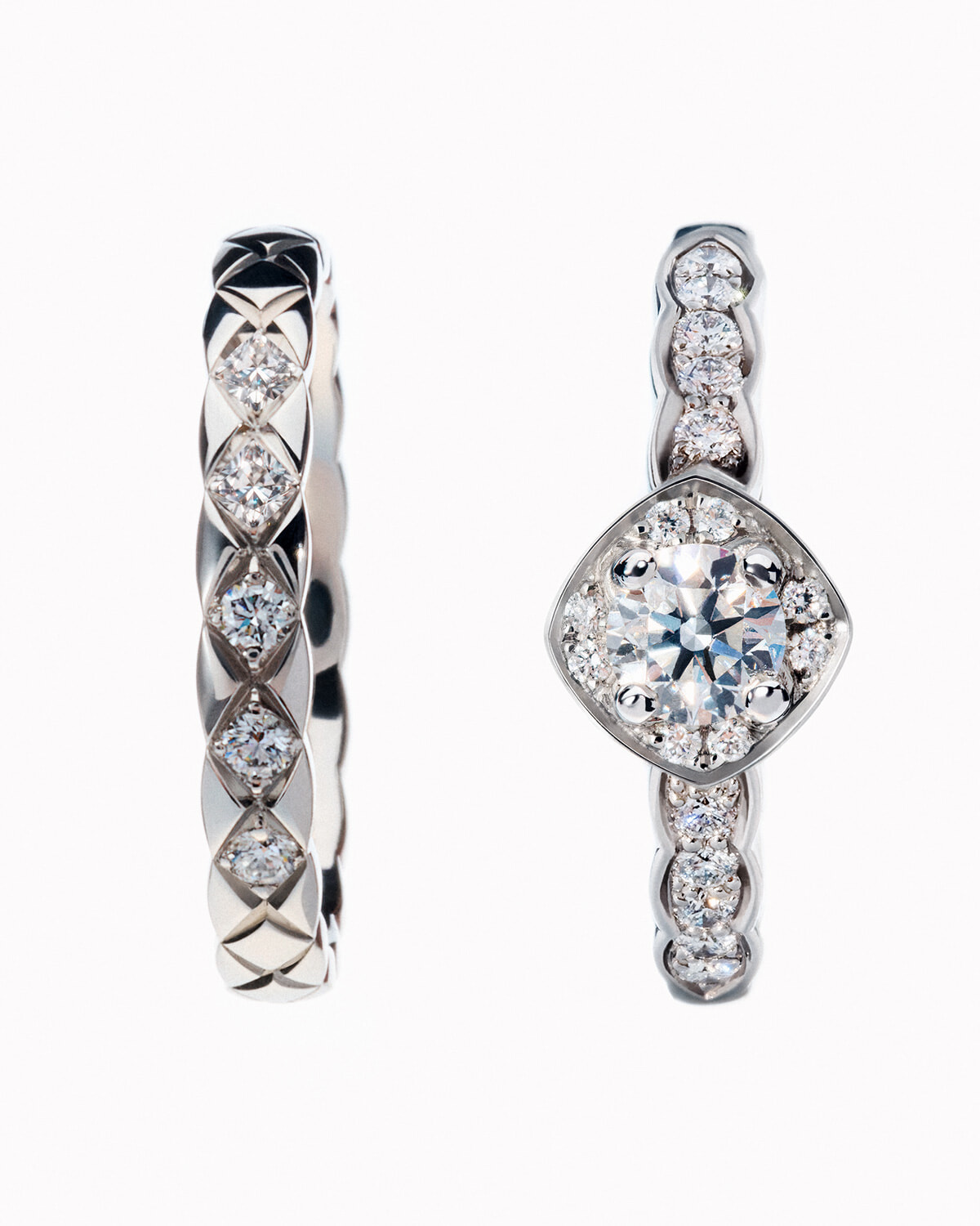 左:リング「ココ クラッシュ」(PT×ダイヤモンド)¥346,500右:リング「ココ クラッシュ」(PT×ダイヤモンド0.25ct〜)¥883,300〜/ともにシャネル ©️CHANEL