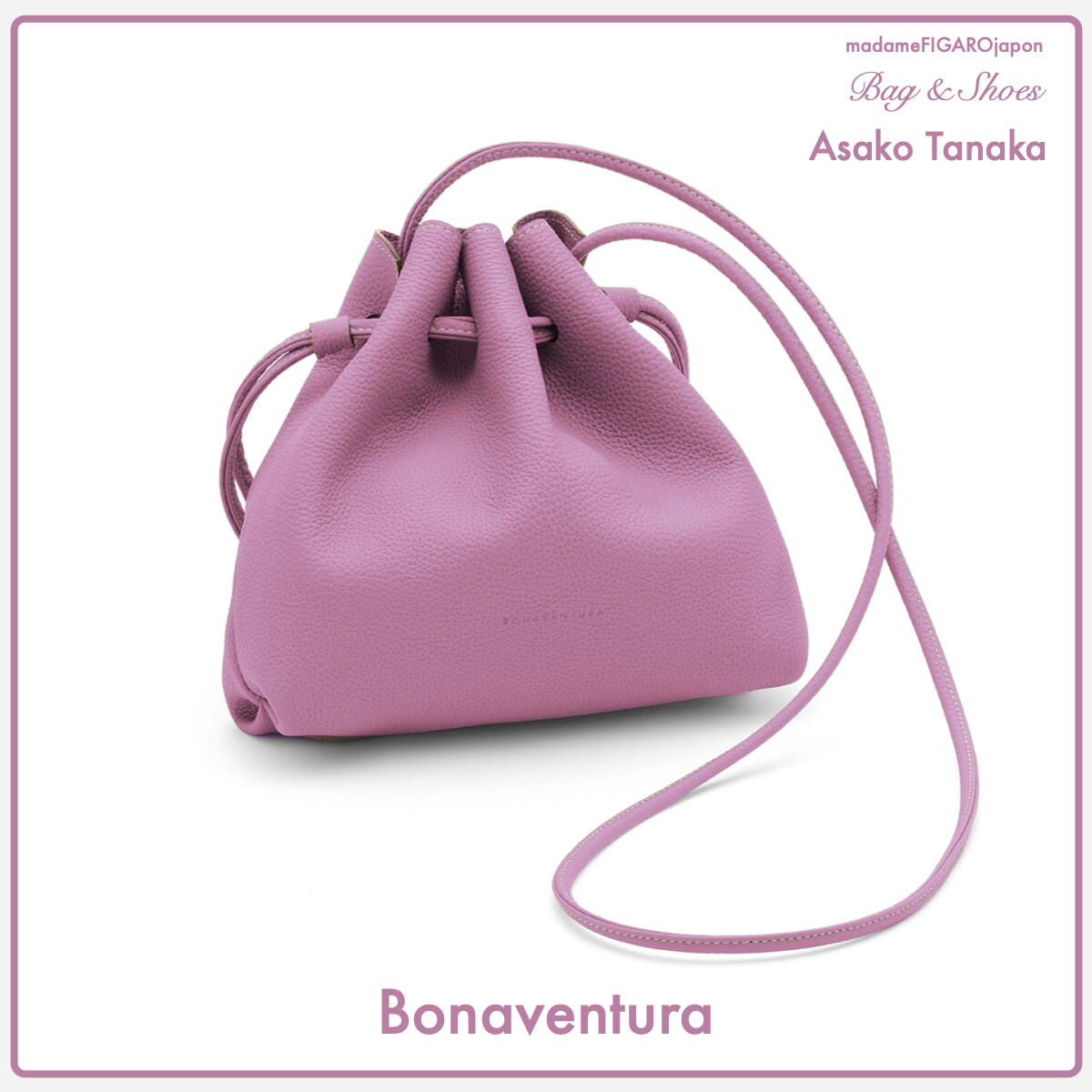 続いてウィッシュリストに追加したのは、ボナベンチュラの定番シリーズ「ノア バッグ」の季節限定カラー、パールパープル。「使い込むうちに味が出てきそうなシュリンクレザーの柔らかい質感と、持っていることを忘れるくらいの軽さが魅力的。巾着型ですが、紐を緩めるとぺたんこになるので旅行や撮影の日にも活躍しそうです」。