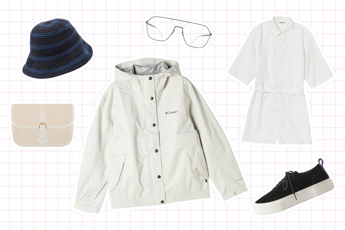 シューズ(ソール5cm)¥29,480/ナイキ ACG(ナイキ カスタマーサービス) 右から時計回りに: シャツ¥35,200/ハイ(フィルグ ショールーム) ショーツ¥29,700/アワー レガシー(エドストローム オフィス) バッグ(H12×W12×D12cm)¥8,900/ライムライク(アットソウル) ソックス¥2,310/ババコ(ショールーム リンクス) キャップ¥33,000/ヘルノ(ヘルノ・ジャパン)