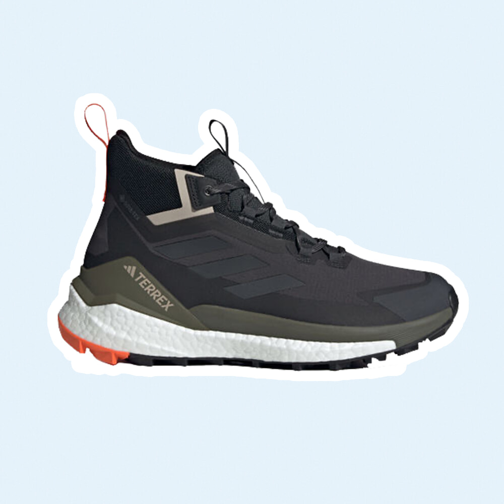 オレンジカラーのアウトヒールとプルストラップがアクセントのハイキングシューズ。雨水や砂利から守る防水仕様で、グリップの強いアウトソールがどんな地形でも快適な足運びを叶えてくれる。こんな開放感に満ちたシューズなら、旅先で身も心も自然と解き放たれるはず!