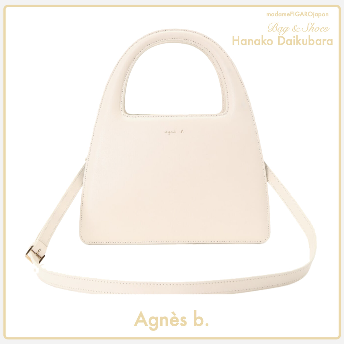 アニエスべーのアーカイブを刷新して新たに登場したバッグ。「ころんとしたレトロなフォルムとハンドル部分も含めた美しいシルエットが魅力。春気分を盛り上げるフレッシュなホワイトが装いのアクセントになってくれそう!」中央にはファスナーポケット、ブラックのミニポーチが備わって、機能面でも頼りになる今シーズンの相棒バッグ。