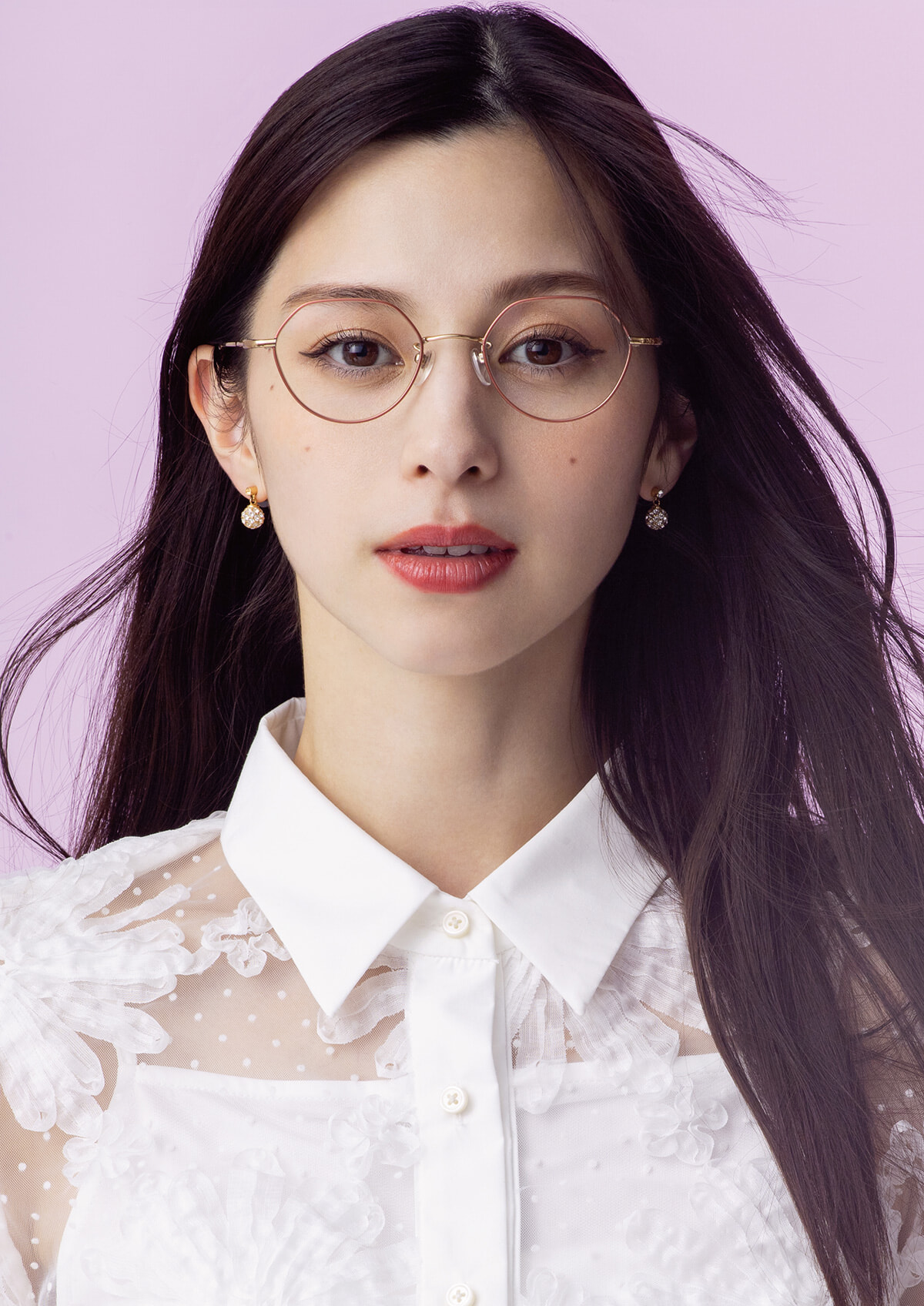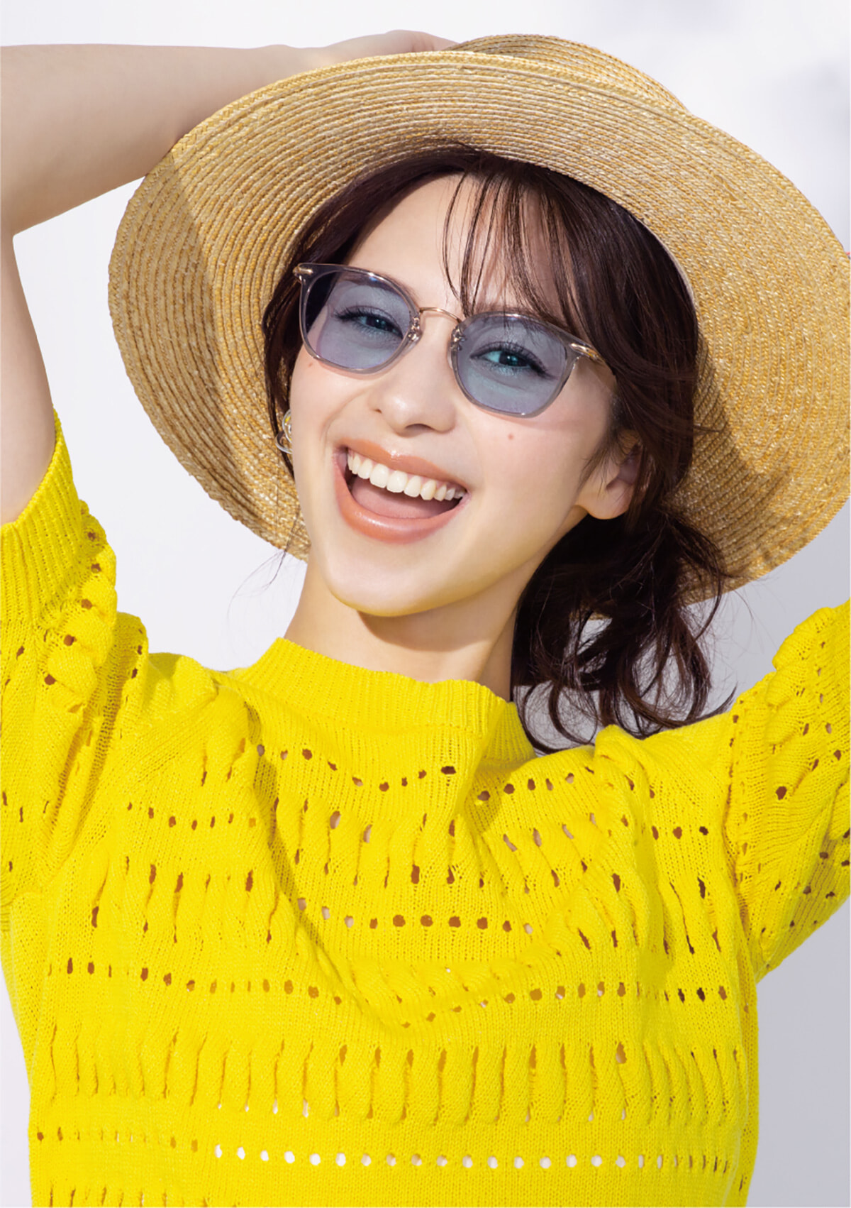 「今回は爽やかな春らしい季節の衣装に合わせたメガネの撮影ができて楽しかったです」と中条。