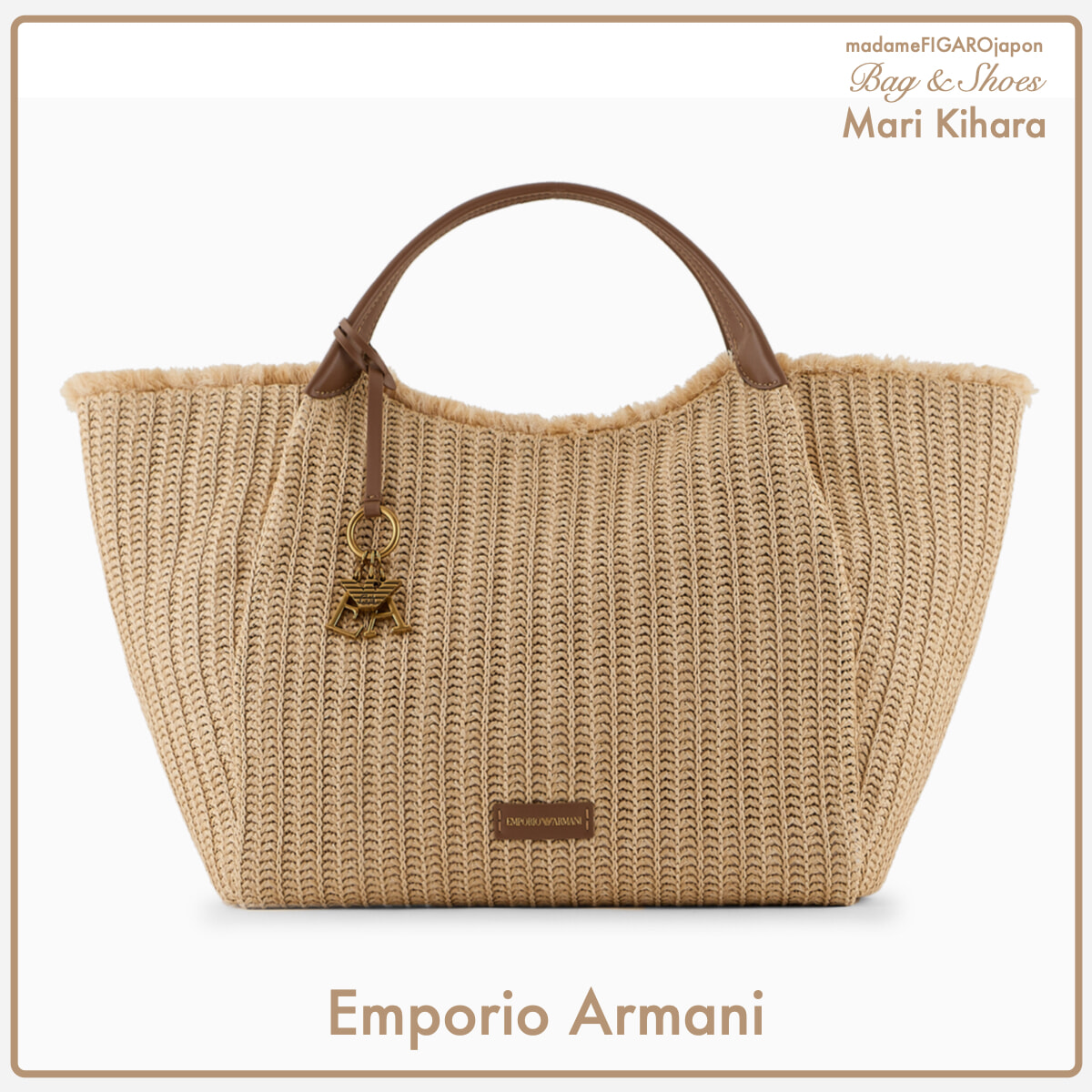 バッグのウィッシュリストとしてチョイスしたのは、ストロー素材を編んだエンポリオ アルマーニのダブルハンドルショッパー。シックで機能的なバッグは、大人のリュクスなスタイルと相性抜群。「夏に欠かせないストローバッグは、ガシガシ物を入れる私にピッタリの大容量サイズ。美しく細やかに編み上げられたデザインなので、デニムパンツからサマードレスまで春夏のコーディネートを大人に一歩引き上げてくれるような、そんな素敵なバッグ」。