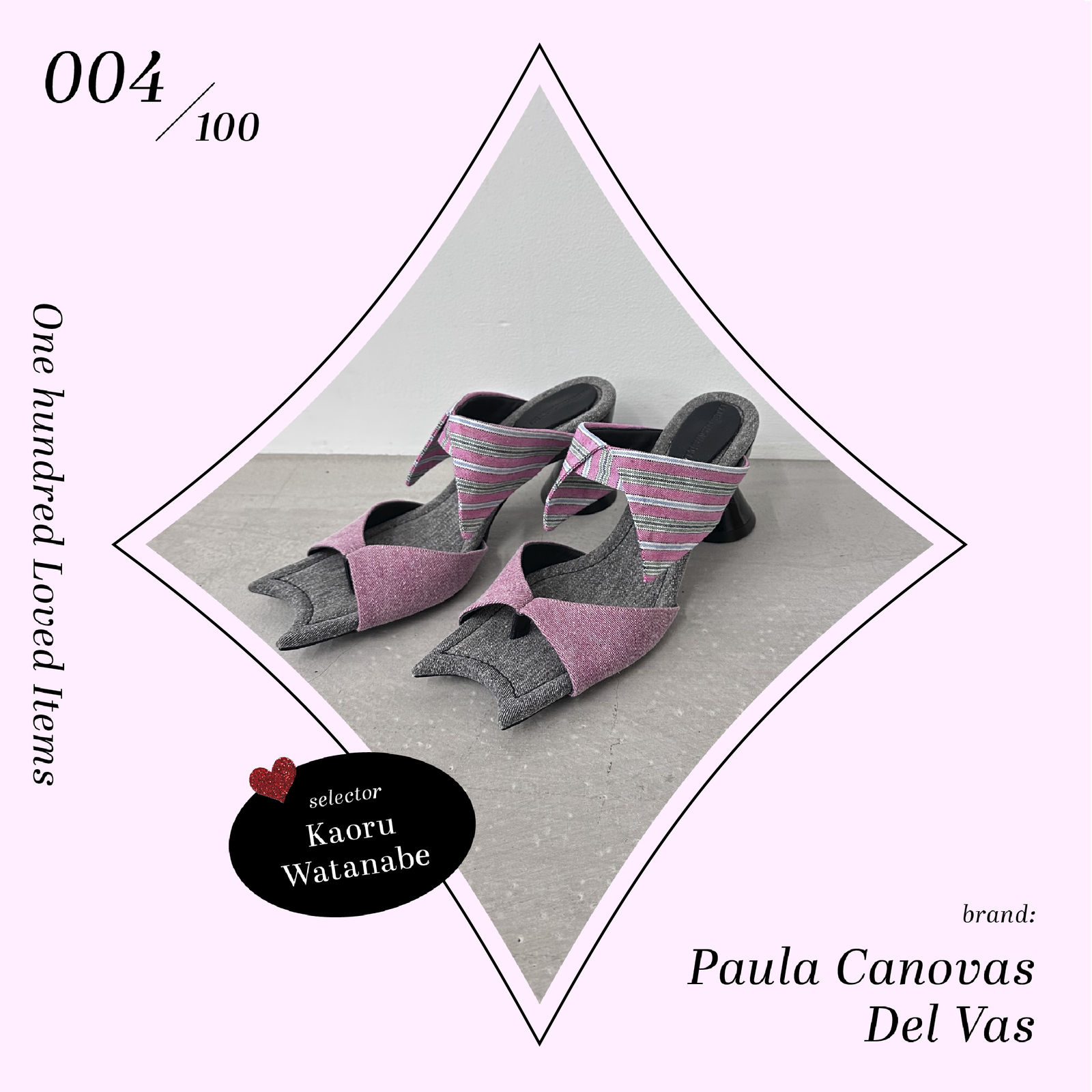 「パウラの世界観が詰まった独特なフォルム、デニムとピンクの組み合わせにときめきました」とセレクトしたのは、展示会で見つけたパウラ カノヴァス デル ヴァスのミュール。