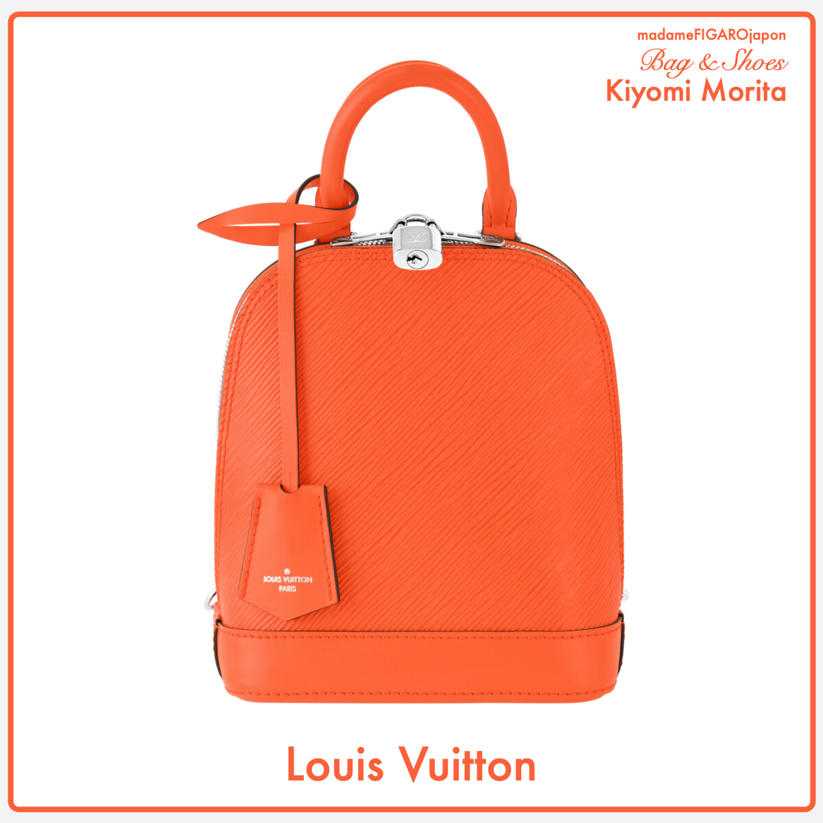 「バッグは縦長にすべきか横長にすべきか……働く身としては機能性の観点からいつも悩むけれど、縦長で派手色×ベーシックフォルムは長く愛せる逸品になりそう」と選んだルイ・ヴィトンのトップハンドルのバッグ。「仕事の時でも遊びの時間でも、巧みにTPOになじんでおしゃれ感を出せる点で、エネルギッシュなオレンジカラーのエピのバッグは万能選手!」