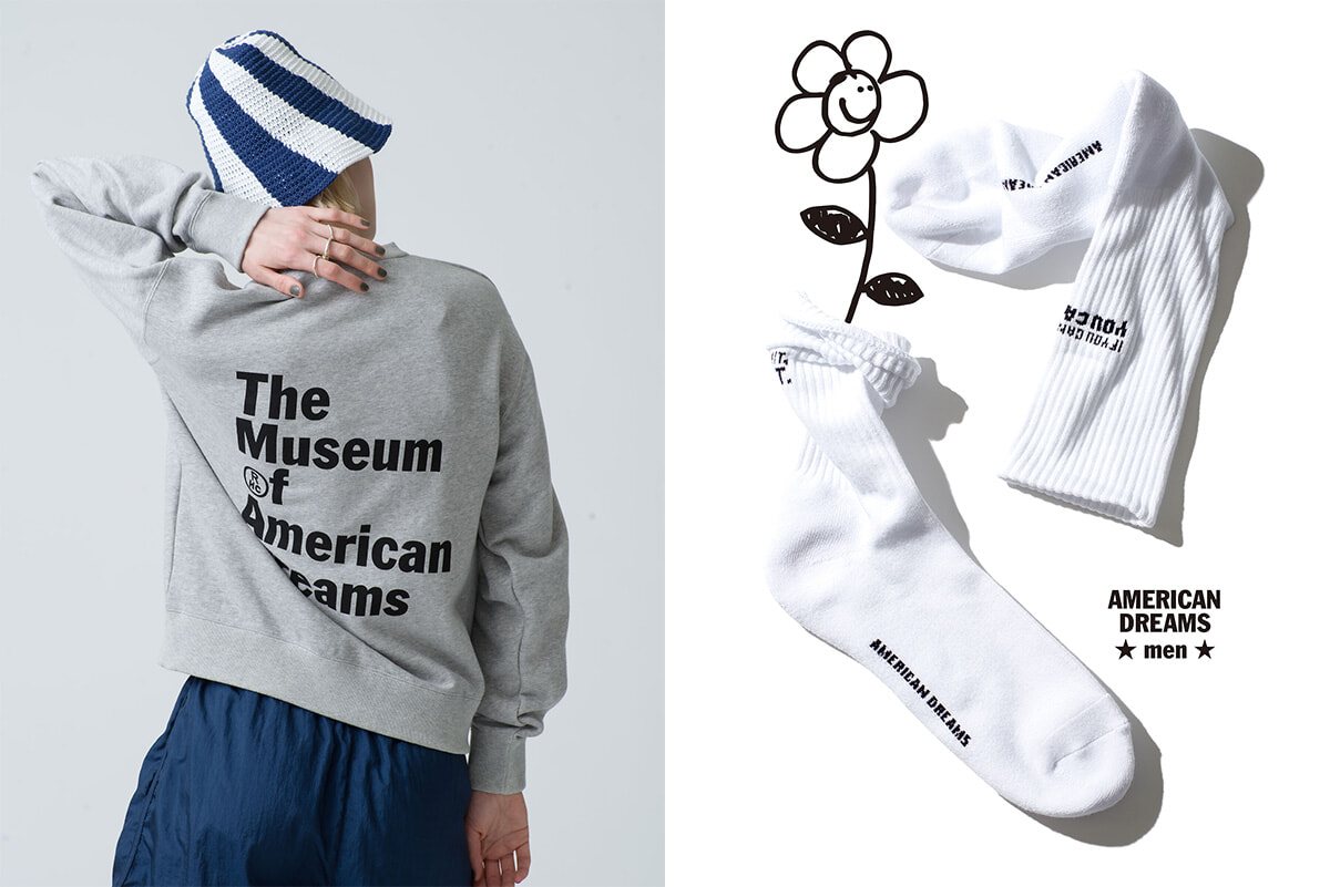 左:スウェット¥12,100 右:ソックス¥2,200(ともに4/27発売)/ともにアメリカン ドリームズ(RHC ロンハーマン)