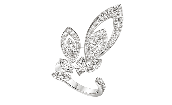 昨年発表されたハイジュエリーコレクション「ミッドナイトサン」もまた、素肌にドレスを纏うようにデザインされた。1970年代ニューヨークの、スタジオ54に代表されるエネルギッシュなパーティシーンが着想源。ドレスにあしらわれた羽根をイメージした作品を観ていると、華やかなディスコへの妄想が膨らむ。エッジの効いたジュエリーとともに煌びやかなフロアで踊ってみたい。いつもの自分と違う、新たな欲望を呼び起こしてくれるのだ。(編集D)