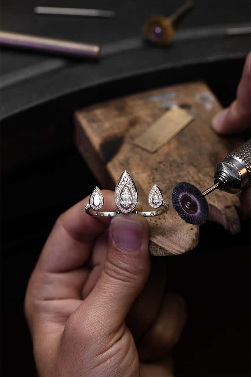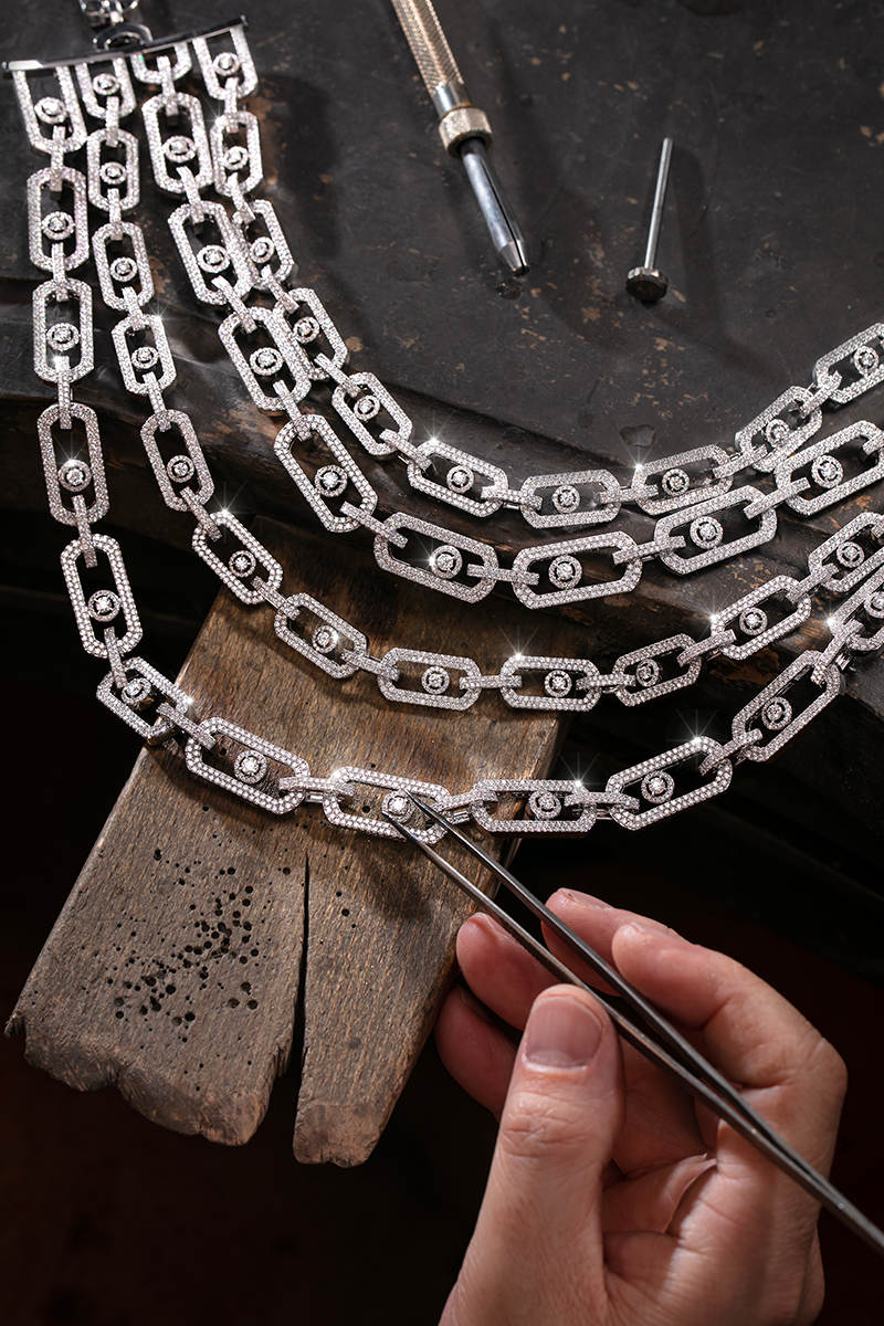 パリに自社アトリエを持つメシカ。サヴォワールフェールが光る「ムーヴ」のダイヤモンドをセッティング。© Pierre Vérez