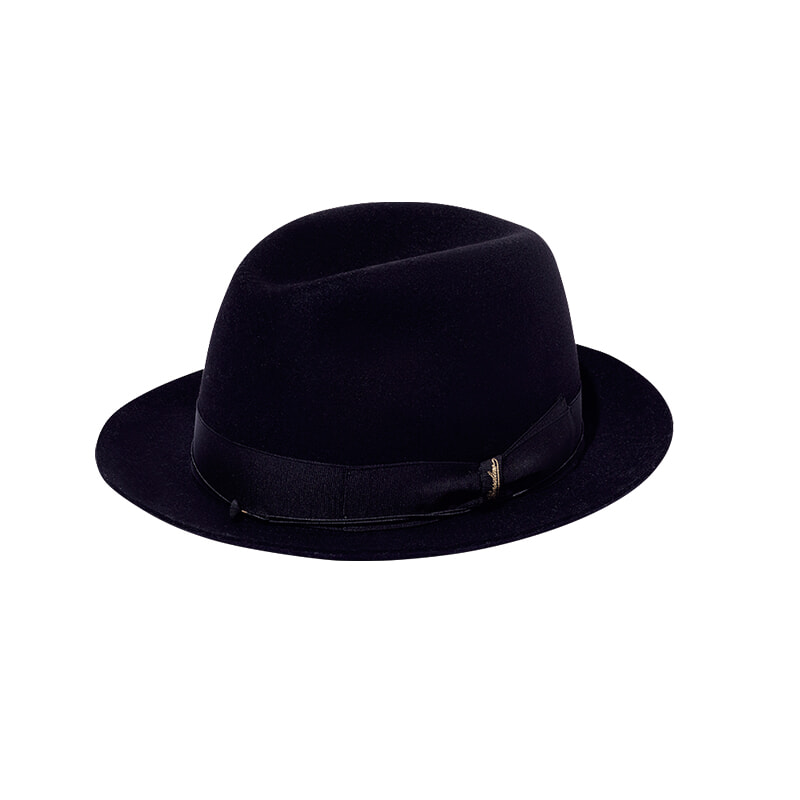野うさぎの毛とラビットファーを贅沢にミックス。5cmのスモールブリムがクラシックな雰囲気を醸す。ハット¥74,800/ボルサリーノ(中央帽子)