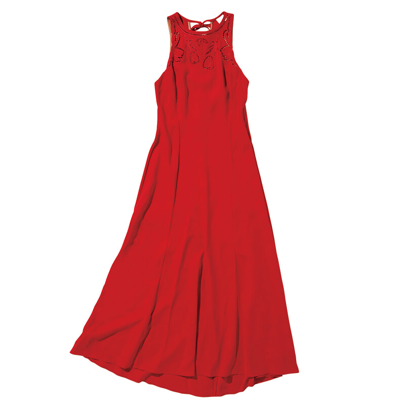 鮮烈な色合いが目を引くワンピース。胸元にはチューリップモチーフを添えて。¥133,000/ポール・スミス(ポール・スミス リミテッド)