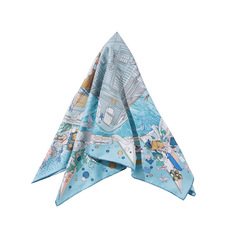 シルク100%の贅沢なテクスチャーが、カジュアルなスタイルをアップデートする。スカーフ(90×90 cm)¥78,100/ エルメス(エルメスジャポン)