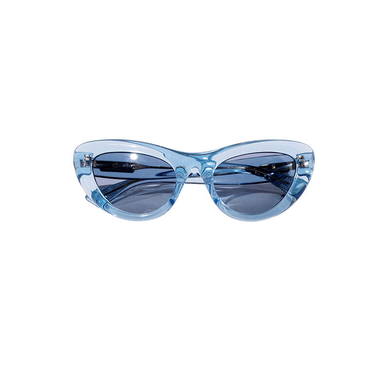 レトロなキャットアイシェイプが60年代スタイルを彷彿とさせる。サングラス¥59,400/ボッテガ・ヴェネタ(ケリング アイウエア ジャパン カスタマーサービス