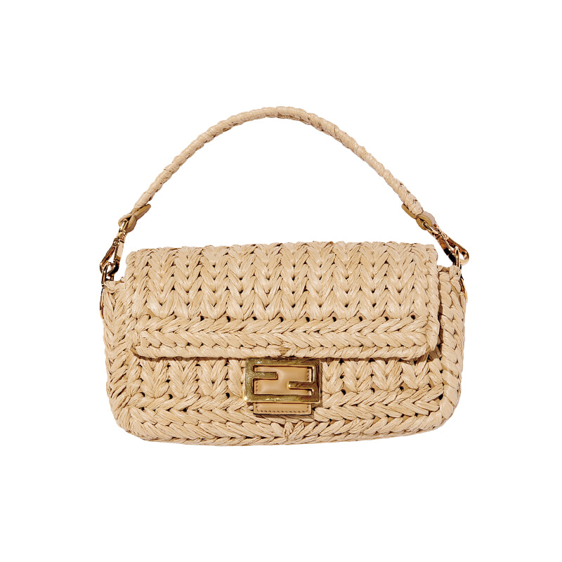 アイコニックな「バゲット」がラフィア素材を纏い、軽やかな夏仕様に。バッグ(H15×W27×D6cm)¥550,000/フェンディ(フェンディ ジャパン
