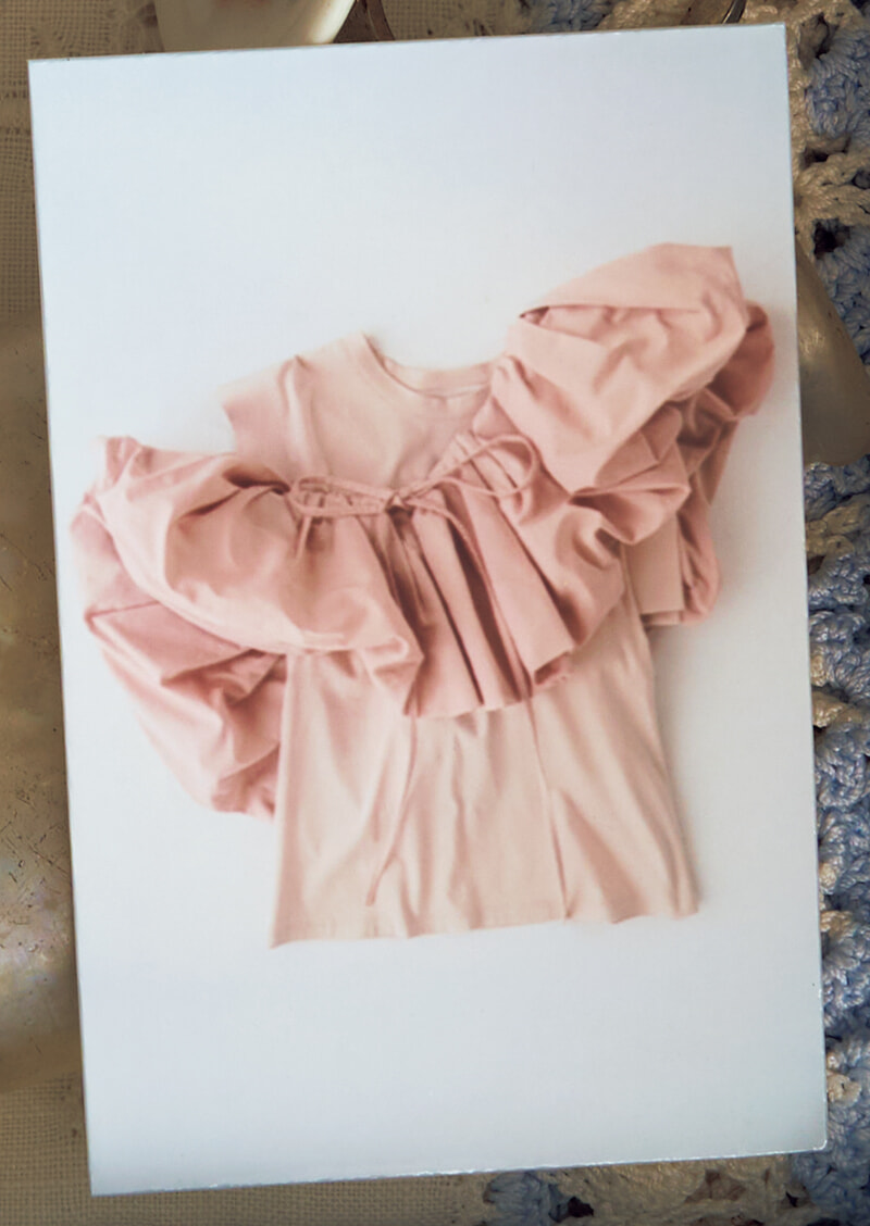 “Clothed In Love〜愛を纏う”をテーマにした春夏コレクションより、ローズのコサージュがついた愛らしいパフスリーブトップ¥57,200/カナコ タムラ