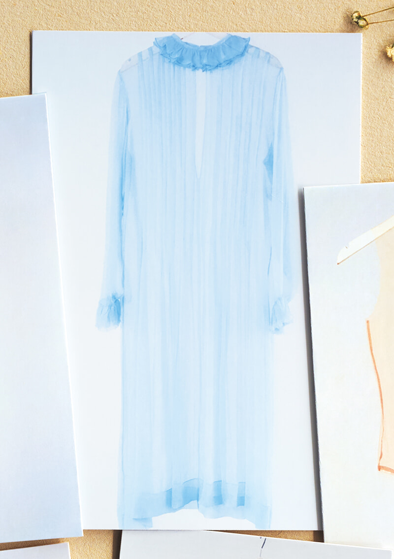 シアーな素材に、ロマンティシズムとメランコリックなムードが共存。